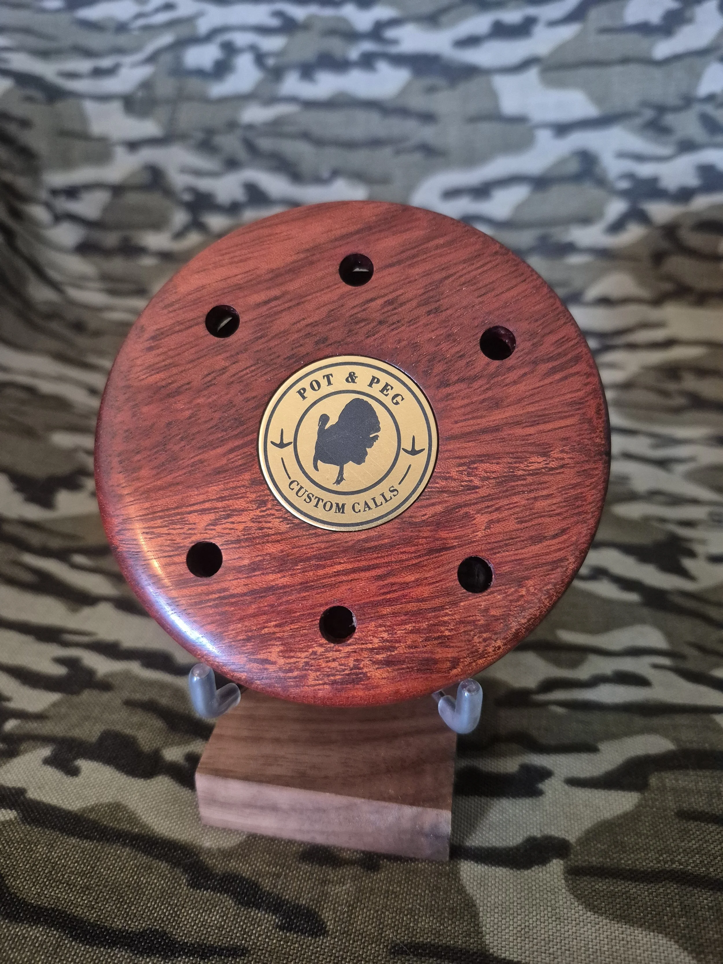 Crafted for hunters who demand precision and tradition, this call combines striking beauty with unmatched performance. The handcrafted Bloodwood pot is paired with a crystal calling surface and a carbon fiber soundboard, producing sharp, clear, and realistic turkey tones that carry through the woods.