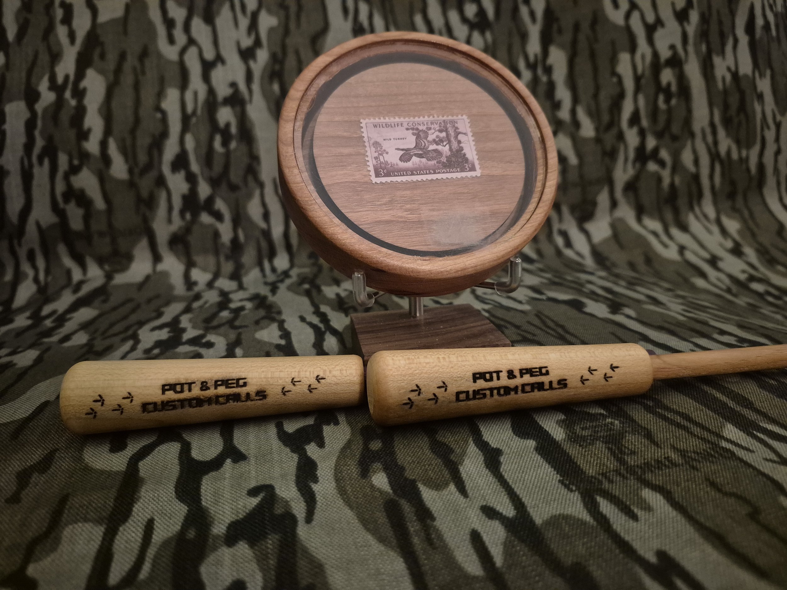 What makes this call truly unique is the embedded 1956 U.S. Wildlife Conservation postage stamp featuring a wild turkey—a tribute to the heritage of turkey hunting and conservation.