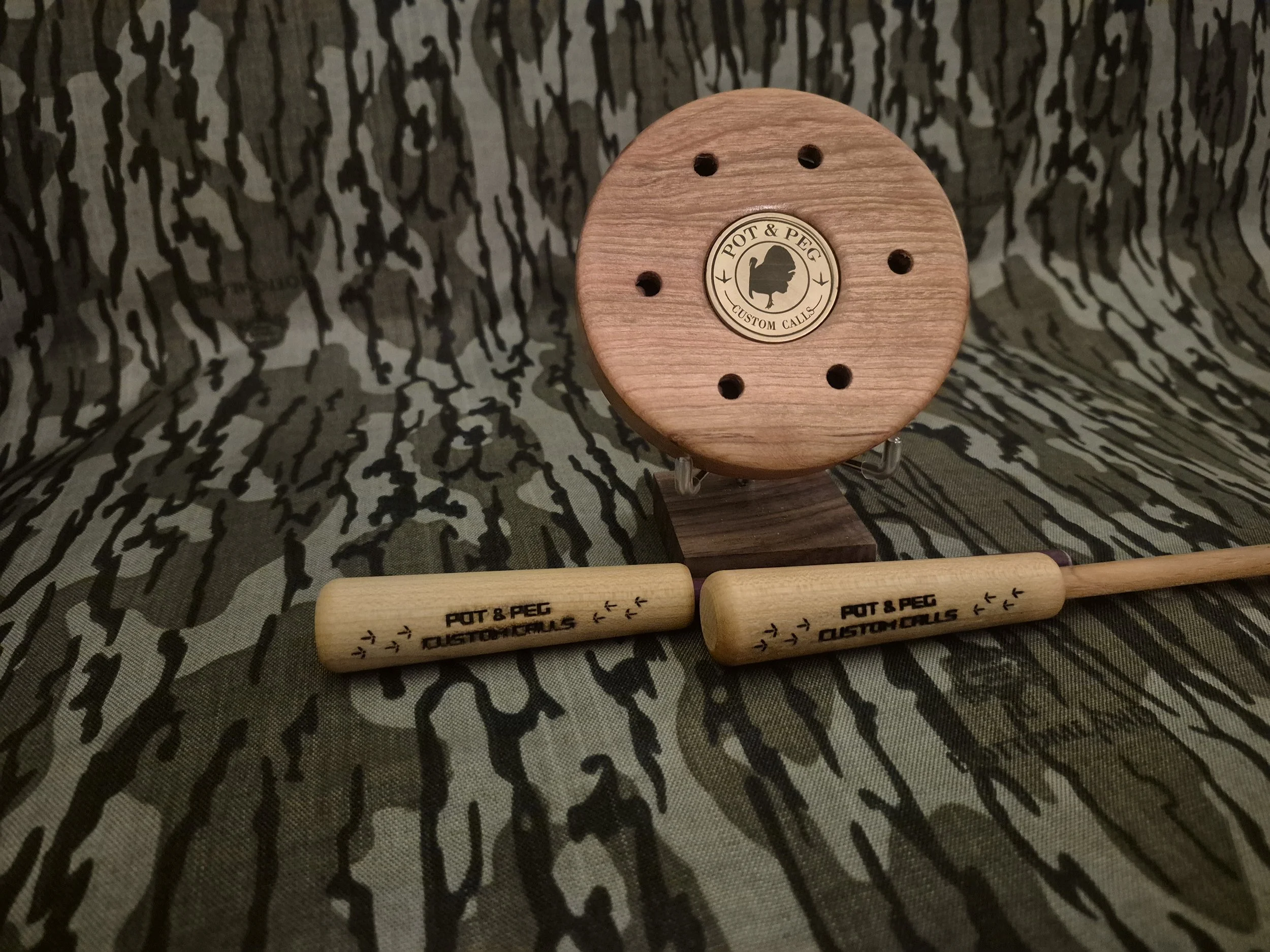 This handcrafted Cherry Crystal Call combines tradition, craftsmanship, and history in one striking piece. Built with a rich cherry pot and matching cherry soundboard, it features a crisp crystal playing surface that delivers sharp, true-to-life turkey sounds in the woods.